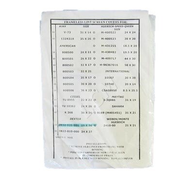 Size 19 x 30 Frameless Lint Screen